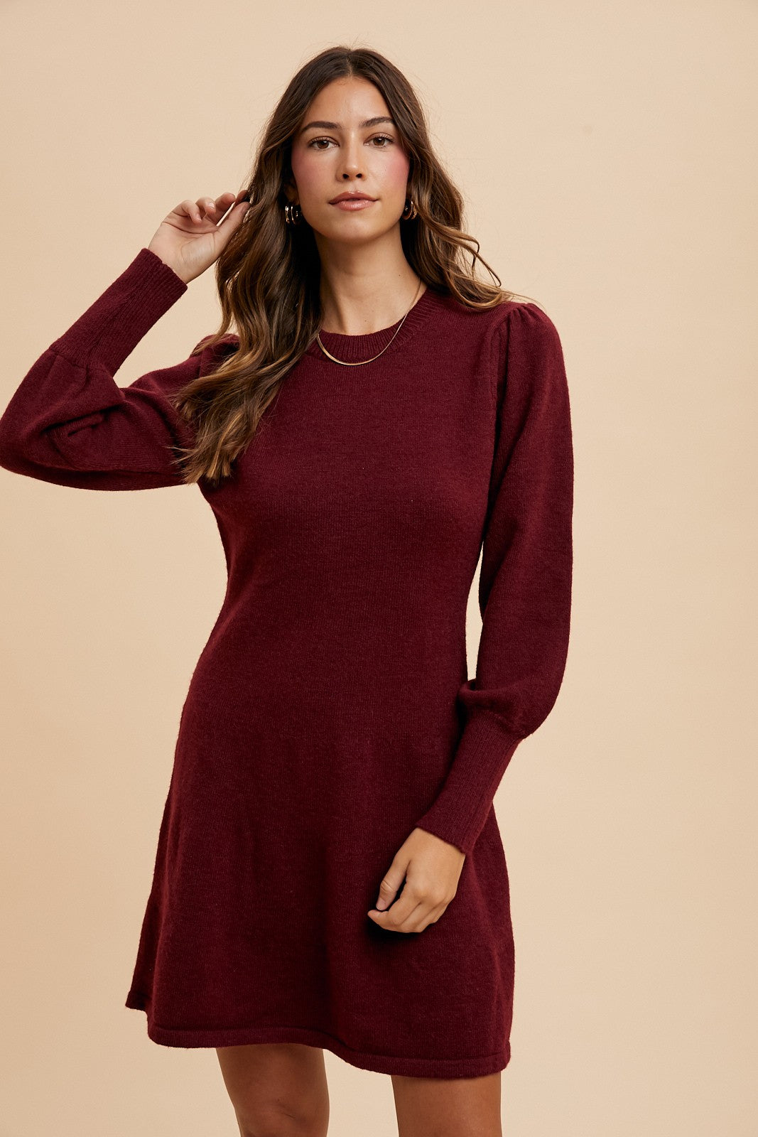 LONG PUFF SLEEVE SWEATER MINI DRESS